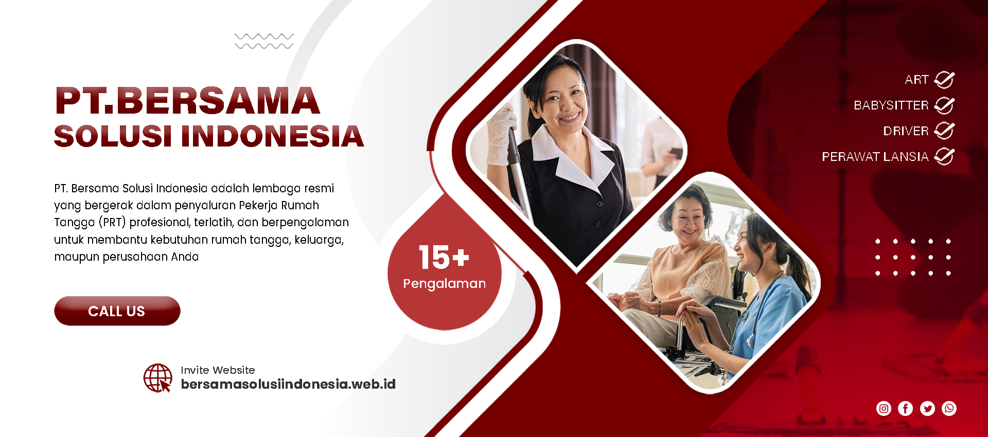 PT. Bersama Solusi Indonesia adalah lembaga resmi yang bergerak dalam penyaluran Pekerja Rumah Tangga (PRT) profesional, terlatih, dan berpengalaman untuk membantu kebutuhan rumah tangga, keluarga, maupun perusahaan Anda. Dengan sistem perekrutan yang ketat, pelatihan intensif, serta proses administrasi yang transparan, kami memastikan Anda mendapatkan tenaga kerja yang amanah, kompeten, dan siap bekerja. Setiap calon pekerja melalui proses evaluasi menyeluruh mulai dari pengecekan identitas, tes kemampuan dasar, hingga pembekalan etika kerja agar mampu memberikan pelayanan terbaik sejak hari pertama penempatan.